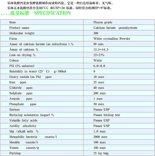 德林乳酸钙 GREEN-CALCIUM LACTATE(FCC/USP)