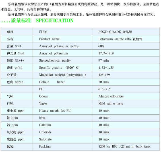 德林乳酸钾 GREEN POTASSIUM LACTATE 60%
