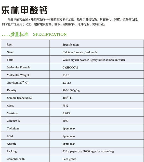 德林甲酸钙 GREEN CALCIUM FORMATE FEED GRADE